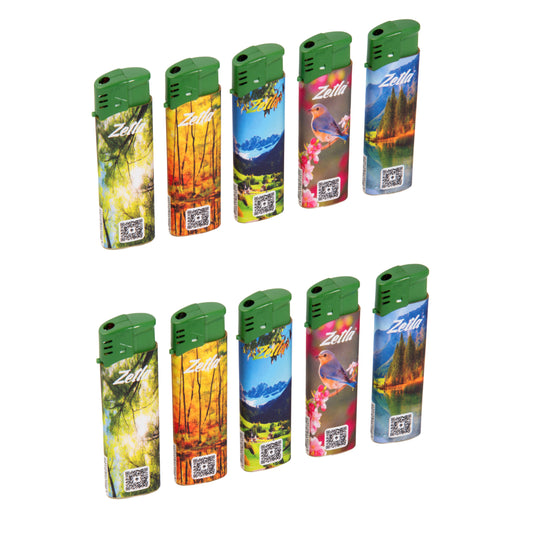 Zetla Click Lighters Nature – Bulk Pack of 50 Push Button Lighters with Adjustable Flame